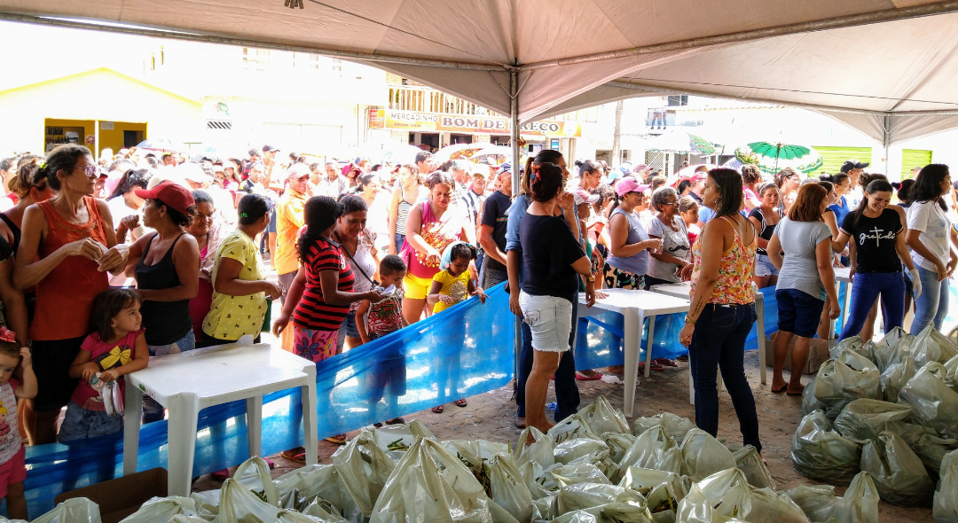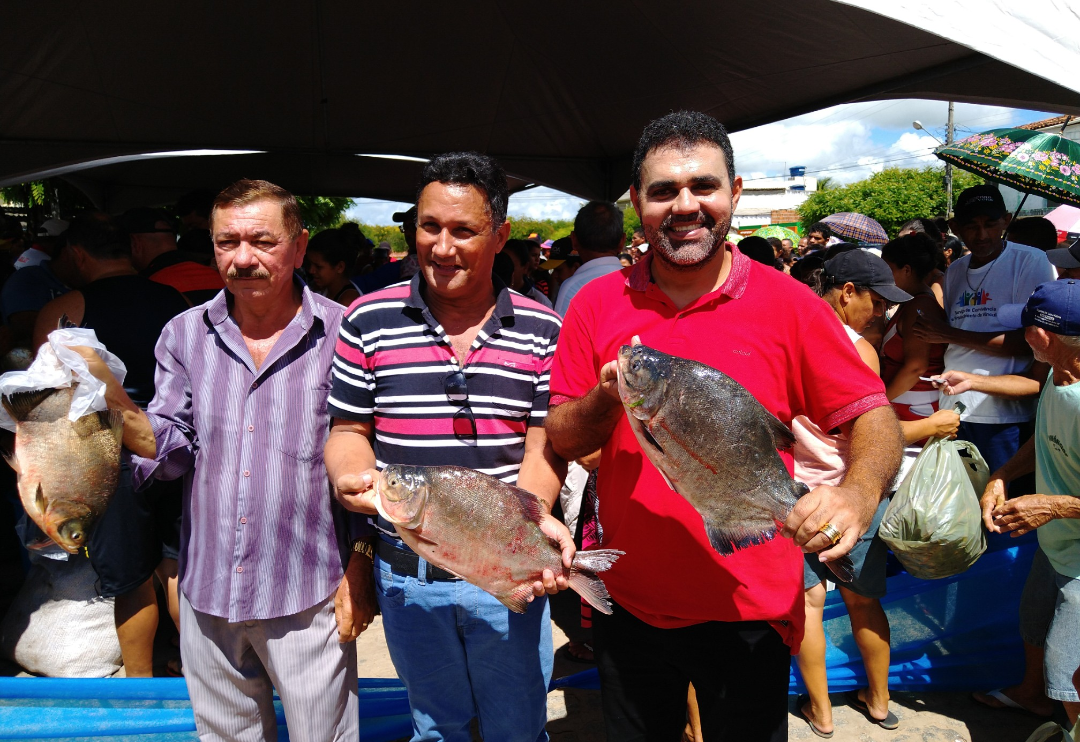 Prefeito Jair entrega peixes e kits de alimentos e recebe o carinho da população após uma década sem a ação; mais de 2 mil famílias foram beneficiadas