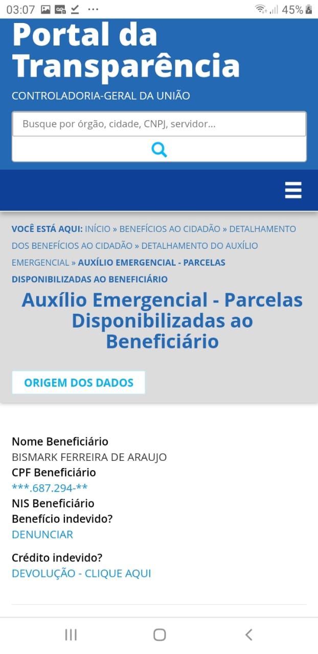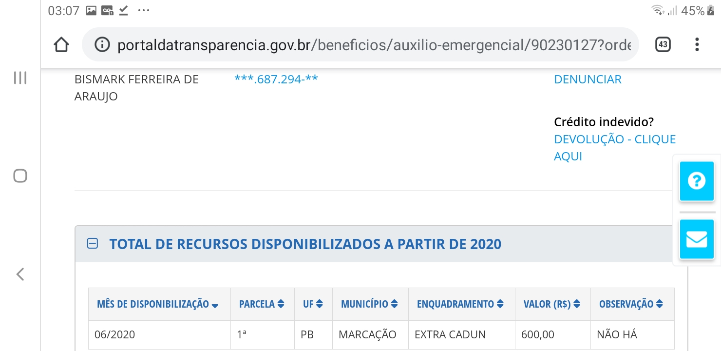 Conforme dados públicos expostos no portal da transparência, o ex-prefeito de Marcação Paulo Sérgio da Silva Araújo está recebendo o Auxílio Emergencial disponibilizado pelo Governo Federal para famílias em situação de vulnerabilidade social durante o período da pandemia covid-19.