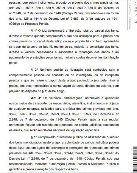 A proposta apresentada pelo parlamentar paraibano, concede ao magistrado em caso de uso de veículos, bens e valores em práticas de crimes antidemocráticos comprovados o confisco. A proposta é baseada após os atos do dia 8 de janeiro de 2023.