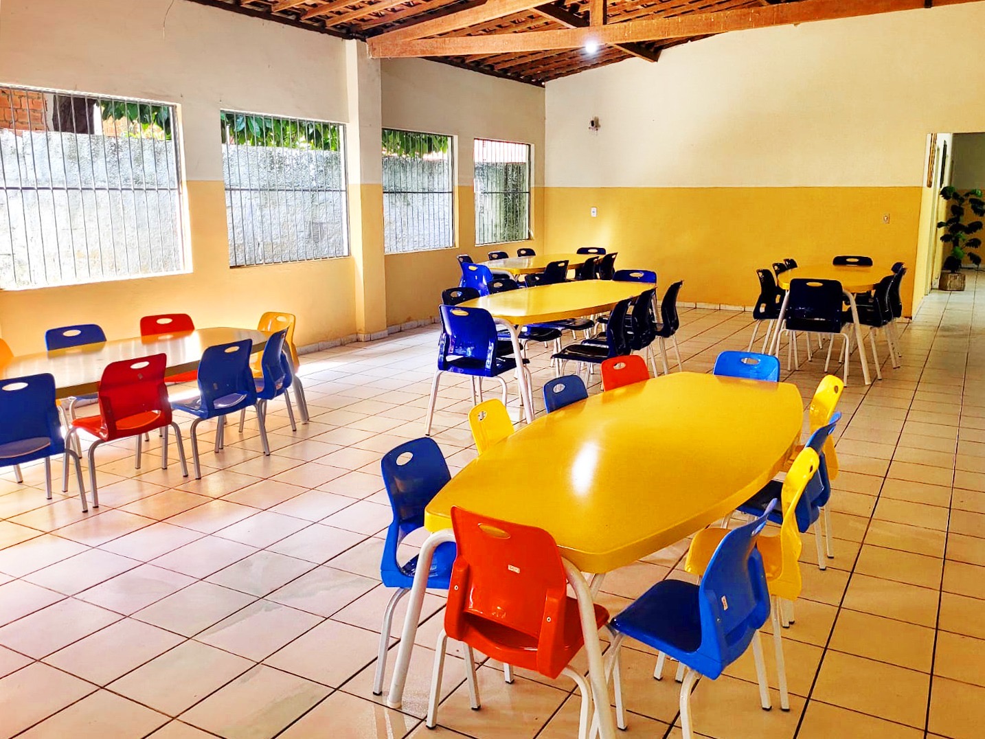 Foram entregues mobílias novas, mesas de pingue-pongue, totó, parquinhos infantis, Datashow, TVs, notebooks e computadores.