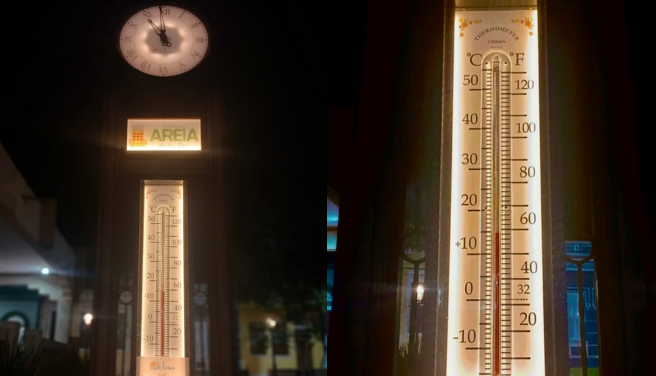 O perfil oficial da cidade no Instagram registou o momento. “Neste momento, Areia registra 14°C no termômetro da Praça Pedro Américo! O frio segue tomando conta das nossas noites e trazendo aquele clima aconchegante típico da nossa serra”, relatou.