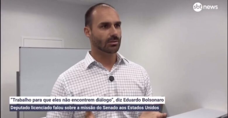 O deputado federal Eduardo Bolsonaro (PL-SP) afirmou que tem atuado para que a comitiva de senadores brasileiros que viajou aos Estados Unidos “não encontre diálogo”. A declaração foi dada em entrevista ao SBT News, nesta segunda-feira 28, em que o parlamentar também comentou sobre o tarifaço anunciado pelo ex-presidente americano Donald Trump.