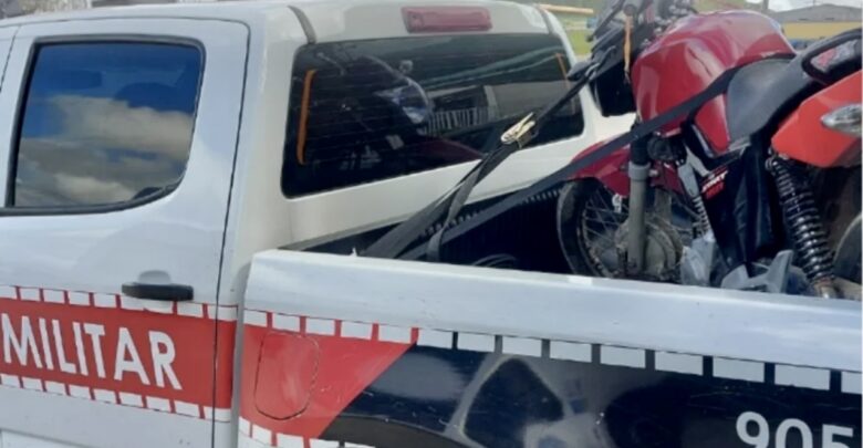Neste sábado (02), a Polícia Militar, localizou e apreendeu uma motocicleta com restrição de roubo e furto no distrito de Camaratuba, município de Mamanguape.
