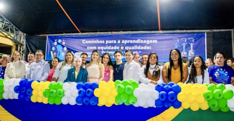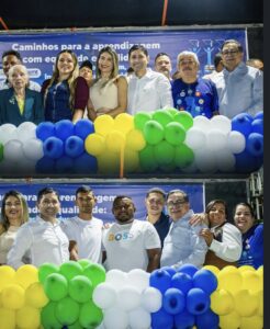 O evento reuniu autoridades municipais, entre elas o prefeito Helhinho Souza (MDB), a primeira-dama Ellen Vasconcelos, a vice-prefeita Dayne Dantas (Solidariedade), a presidente da Câmara, Neide Rodrigues (Solidariedade), além do secretário de Educação, professor Ramos, vereadores e secretários municipais.