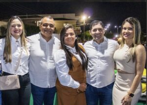 A vereadora Elivânia Maria marcou presença ao lado do prefeito Helhinho Souza, da primeira-dama Ellen Vasconcelos, da presidente da Câmara Neide Rodrigues, e do padre da cidade, além da vice-prefeita Dayane Dantas e do seu esposo, Uilames Correia.
