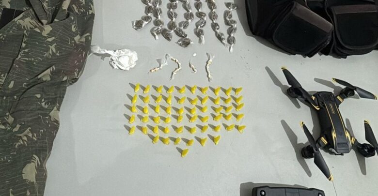 De acordo com a PM, o espaço funcionava como ponto de apoio ao crime e estava instalado em uma casa abandonada. No local, os policiais encontraram mais de 100 embalagens de entorpecentes, uma capa de colete balístico, uma roupa camuflada e o drone usado pelos criminosos para vigiar a área. Os comparsas do suspeito conseguiram fugir ao perceber a chegada das equipes.