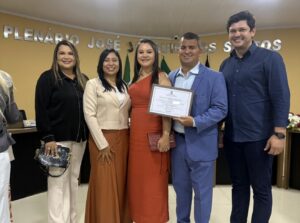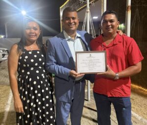 Na noite desta quarta-feira (3), o Secretário de Administração de Marcação, Daniel Duarte, recebeu o Título de Cidadão Marcasense, honraria concedida pela Câmara Municipal. A proposição foi apresentada e aprovada pelos vereadores, com destaque para a iniciativa da presidente da Casa, vereadora Keliane Bernardo.