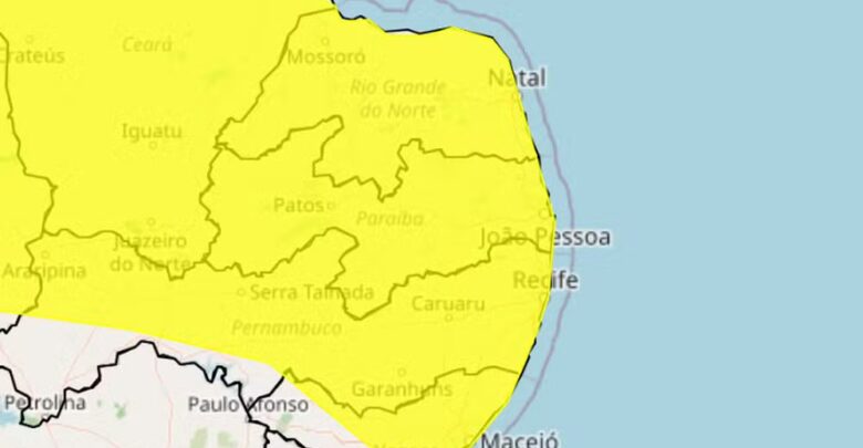 O Instituto Nacional de Meteorologia (Inmet) renovou, nesta quarta-feira (8), o alerta amarelo de chuvas intensas para todos os municípios da Paraíba. O período de alerta segue até as 23h59.