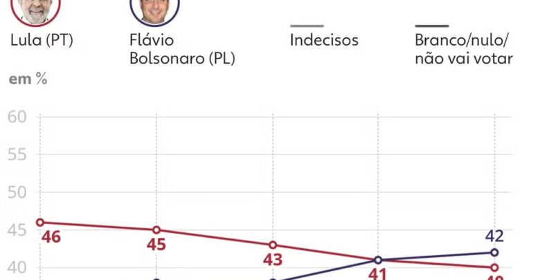 Na pesquisa passada da Quaest, em março, Lula e Flávio empatavam, pela primeira vez na série histórica, com o percentual de 41% cada. A vantagem do presidente era de dez pontos em dezembro, passou para sete em janeiro e para cinco em fevereiro. Agora em abril, Flávio Bolsonaro tem vantagem de dois pontos diante do petista.
