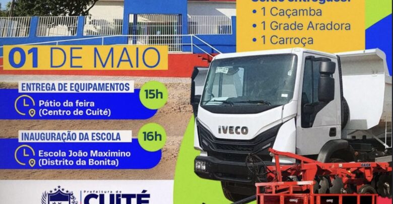 Cuité de Mamanguape inaugura escola e entrega equipamentos agrícolas no dia 1º de maio